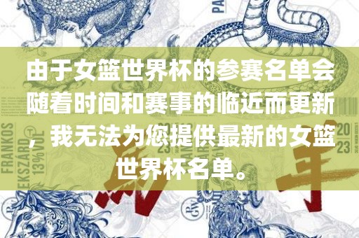由于女篮世界杯的参赛名单会随着时间和赛事的临近而更新,我无法为您提供最新的女篮世界杯名单。