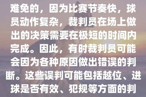 尽管误判在足球比赛中难以避免,但国际足球组织和赛事组委会一直在努力采取措施减少其发生,确保比赛的公正和公平。
