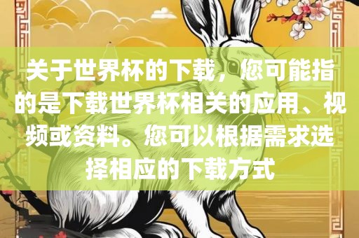 无论您选择哪种方式下载世界杯相关内容,请确保遵守当地的法律法规和版权规定,请注意保护个人信息和设备安全,避免访问不安全或未知来源的下载链接。