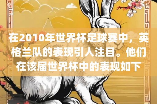 在2010年世界杯足球赛中,英格兰队表现出色。他们在比赛中展现出强大的实力和潜力,赢得了球迷和专家的关注。英格兰队在比赛中展现出了出色的技术和战术水平,以及团队合作精神和坚韧的斗志。尽管他们在该届世界杯中未能夺冠,但他们的表现仍然令人难忘。
