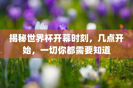 摘要:世界杯开幕时刻即将到来,你需要知道的一切都在这里。开幕时间精确到几点,全球球迷翘首以盼。本文为你揭开世界杯的神秘面纱,提供开幕时刻的详细信息,让你不错过任何一场精彩比赛。不容错过,一起期待这场足球盛宴的开幕时刻吧!