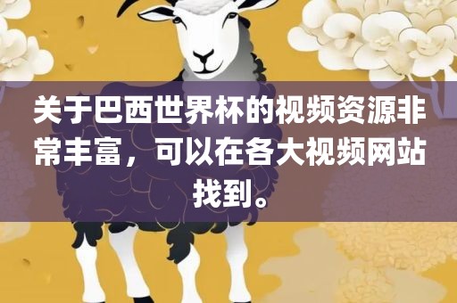 关于巴西世界杯的视频资源众多,各大视频网站均有收录。观众可以方便地观看相关视频。巴西世界杯视频资源齐全,可在各大视频网站观看。