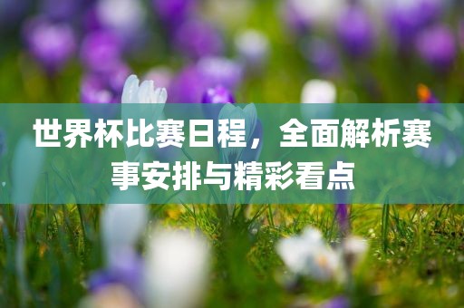 摘要:世界杯比赛日程已经公布,本文为您全面解析赛事安排与精彩看点。本次世界杯比赛将呈现多场精彩对决,包括小组赛、淘汰赛等阶段,各国强队将展开激烈角逐。赛事看点包括明星球员的出色表现、精彩进球瞬间以及悬念重重的比赛结果等。本文还将为您介绍比赛日程中的重点赛事和值得关注的球队,让您不错过任何一场精彩比赛。