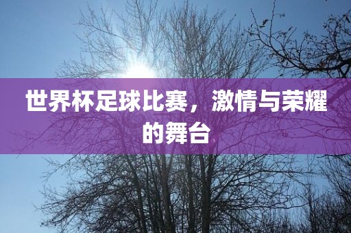 世界杯足球比赛是一场充满激情与荣耀的盛宴,它展现了运动的魅力,激发了人们的拼搏精神,世界杯足球比赛也是全球最大、最受欢迎的体育赛事之一,吸引了全球各地的球迷和运动员的关注,让我们共同期待下一届世界杯足球比赛的来临,共同见证更多的精彩瞬间!