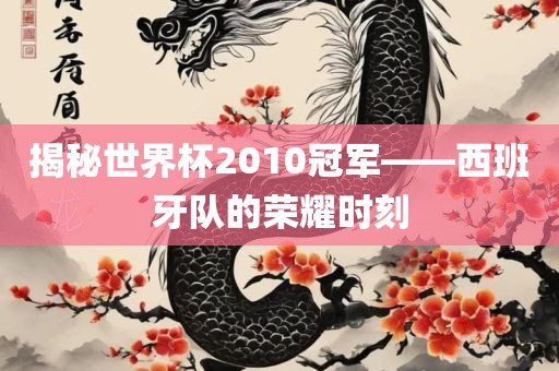 四年一度的世界杯足球赛是全球瞩目的盛事,而2010年的南非世界杯更是令人难以忘怀,在这届比赛中,一支队伍凭借出色的表现,成功夺得冠军,成为了全球球迷心中的英雄,本文将围绕“世界杯2010冠军”这一主题,带您回顾这支队伍的光辉历程。