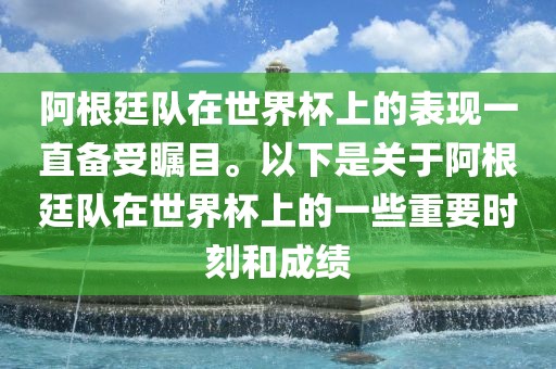 阿根廷队在世界杯上的表现一直备受瞩目。以下是关于阿根廷队在世界杯上的一些重要时刻和成绩