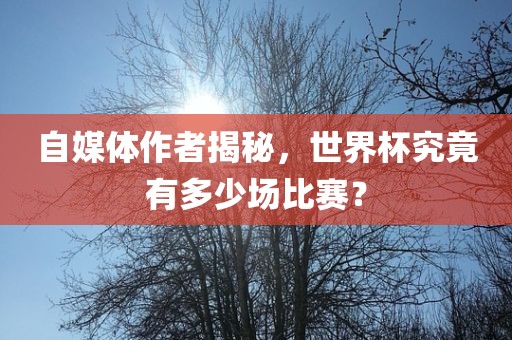 转载请注明来自河南立本管道设备有限公司,本文标题:《自媒体作者揭秘,世界杯究竟有多少场比赛?》