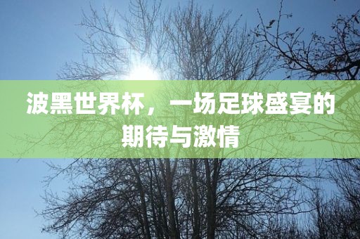 波黑世界杯即将上演一场足球盛宴,全球球迷瞩目。这是一场充满激情与期待的赛事,各国球队将展开激烈角逐,展现出精湛的球技和团队合作精神。本赛事不仅是一场体育盛事,更是各国文化交流和友谊的桥梁。让我们共同期待这场足球盛宴,见证球员们的精彩表现,感受足球带来的欢乐与激情。